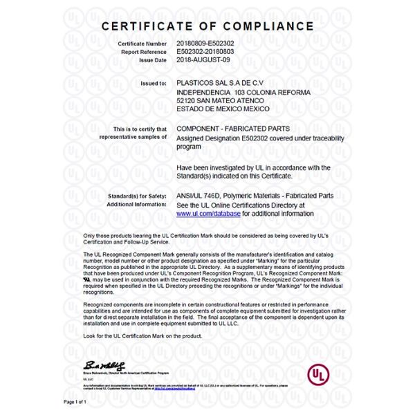 Materiales poliméricos: piezas fabricadas UL 746 D Esta norma cubre los requisitos para piezas moldeadas o fabricadas. Se describen los sistemas de control de identidad… Read More »Injection molding for plastic parts (UL)