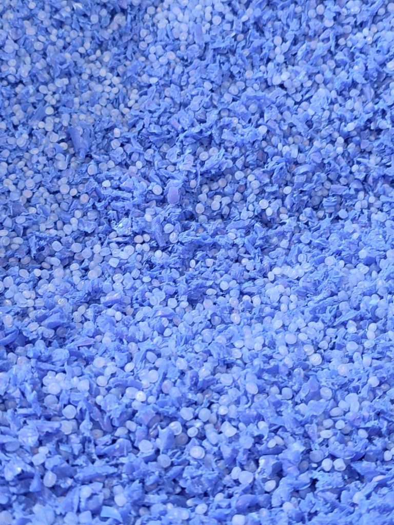 Use the recycling percentage approved by the customer and that guarantees the properties of the manufactured parts. Use 100% in-line cold casting for PPE, PS.